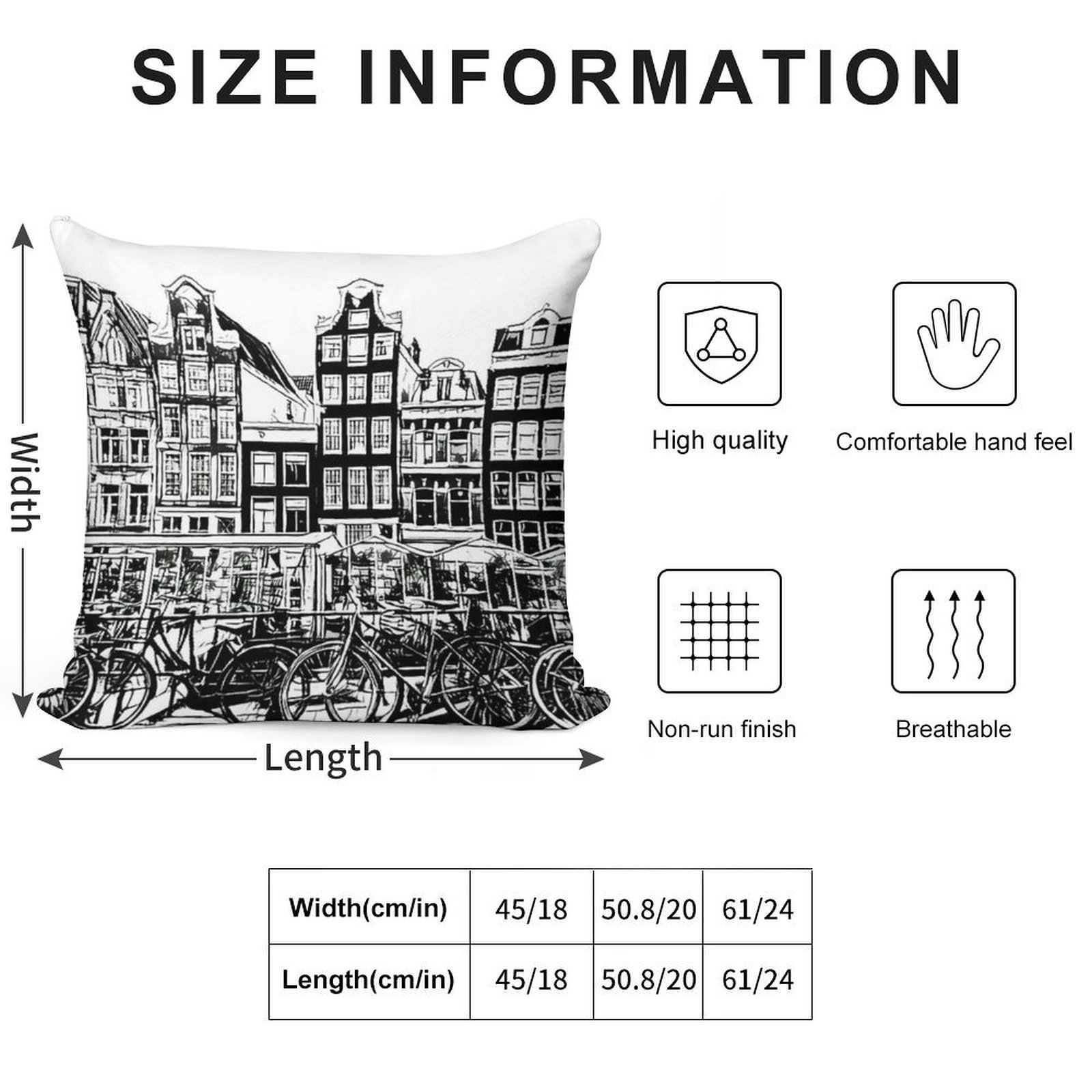 - Reinforced stitching along the edges prevents fraying and extends the life of your Amsterdam Row Houses, Black And White Pillowcase.